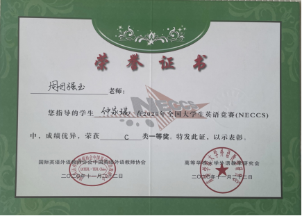 教研室注重对学生的培养,多次指导学生代表学校参加“外研社”四川省大学生英语挑战赛和全国大学英语竞赛并获优异成绩。教研室强调将语言教学与思政相结合,培养学生通过语习和文化熏陶,建立大国情怀与宏大的民航格局。