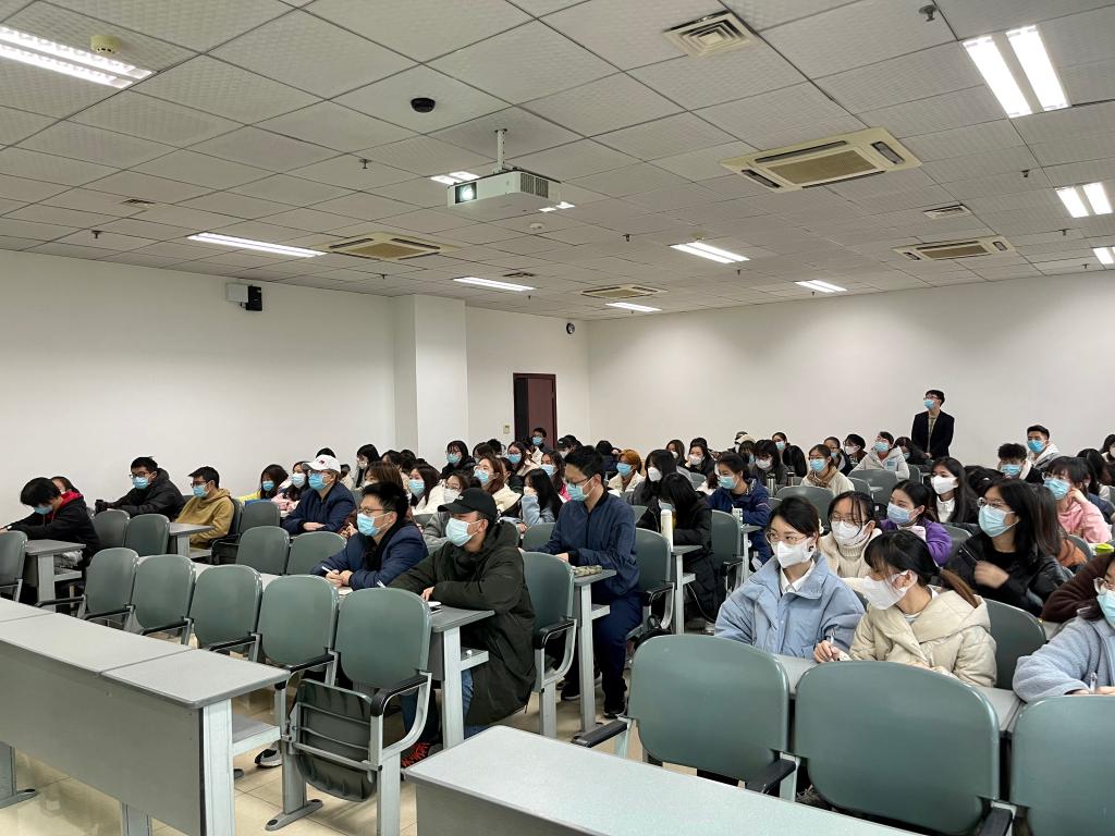 讲座开始前,辅导员叶奇奇对主讲人帅刚进行隆重介绍、并围绕当前疫情下国内就业形势研判、考研动态分析、考研政治重要性等方面对参会的近百名考研学生进行解读,以明确学生的职业规划,提升对考研的正确认识。