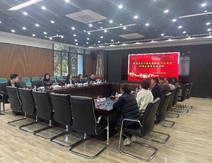 为进一步推进中飞院英语专业课程“三进”教育工作及公共英语课程思政的建设和开展,提升“三进”教育工作质量和课程思政教师队伍建设水平,深化外语专业建设工作,2023年3月9日,beat365英国官网网站郑丽副院长带领学院英语系、翻译系、飞行基础英语教研室、民航英语教研室、乘务英语教研室多名科级干部以及骨干教师赴四川外国语大学(以下简称川外)进行交流。本次交流学习分为会议座谈和教学观摩两部分。