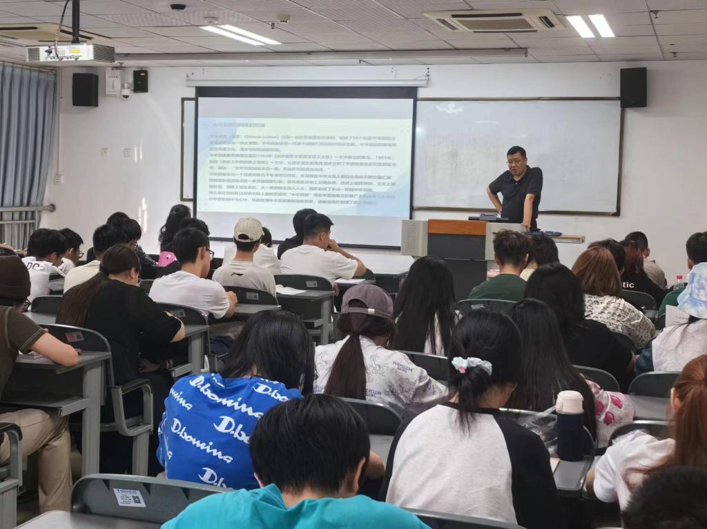 当前世界正经历百年未有之大变局,我国正处于实现中华民族伟大复兴关键时期,为了让学生观大势、明大势,正确梳理中华民族与各民族、中华文化与各民族文化的关系,以凝聚共识,画出最大同心圆,以社会主义事业接班人身份为社会主义发展贡献力量,5月24日,beat365英国官网网站邀请学院李卫东副校长为英语2022级学生讲授《形势与政策》课程,beat365英国官网网站院长肖凌出席并主持本次授课。
