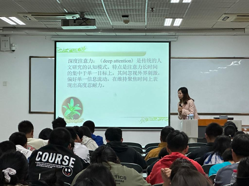 为营造出“多读书、好读书、读好书”的良好氛围,鼓励学生“以读书为荣,以读书为乐”,beat365英国官网网站于10月18日晚特邀学院副教授叶家春博士为全体新生做一场主题为“深度阅读”的讲座。本次活动由班主任曾楠葳老师主持。