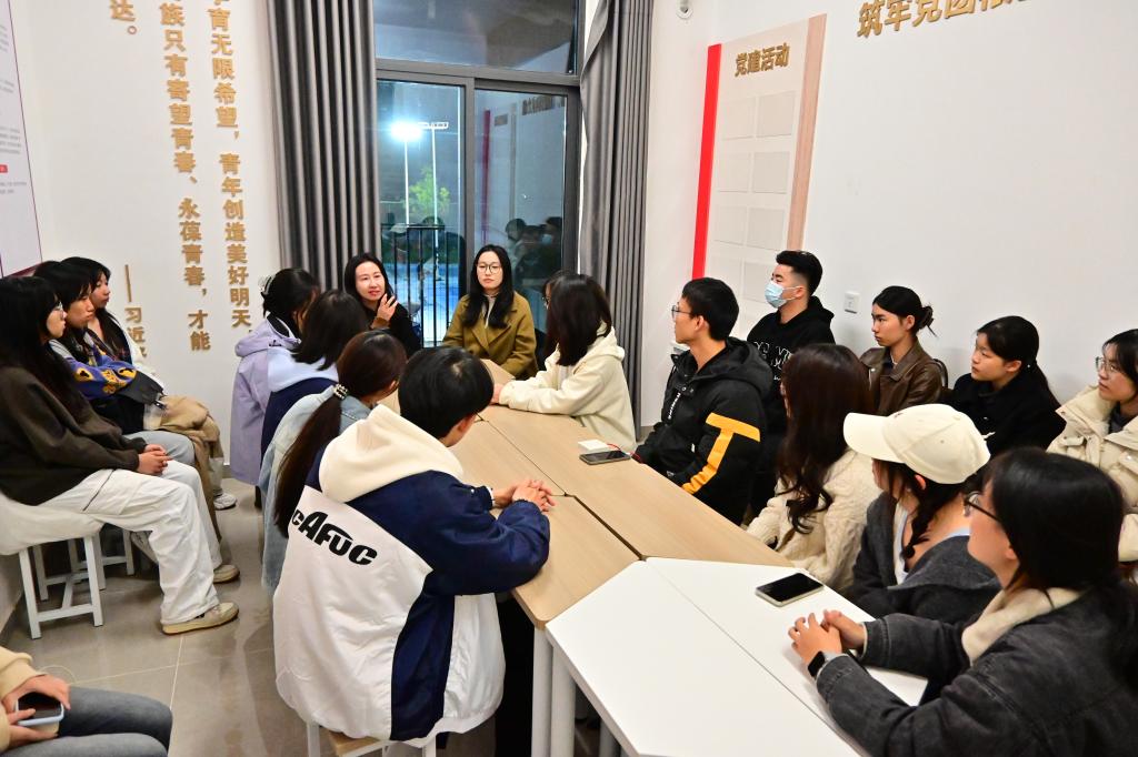 本网讯 beat365英国官网网站王冠婷报道:为精准解答学生专业学习困惑,清晰勾勒学业进阶与职场衔接路径,11月17日晚,扶摇书院·beat365英国官网网站一站式社区特邀学院教研室主任周丹强玉老师及研究生代表,在社区内举办“沉潜治学·明晰航向”学业指导与职业规划主题分享会,为参会交流学生送上学习方法、求职技巧与心态调整的全方位专业指导,助力学院青年学子明晰成长方向、夯实发展根基。