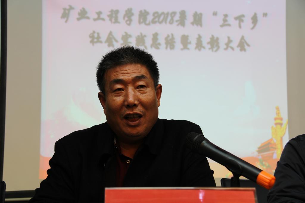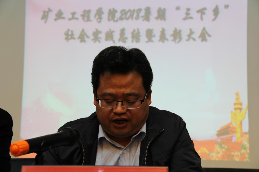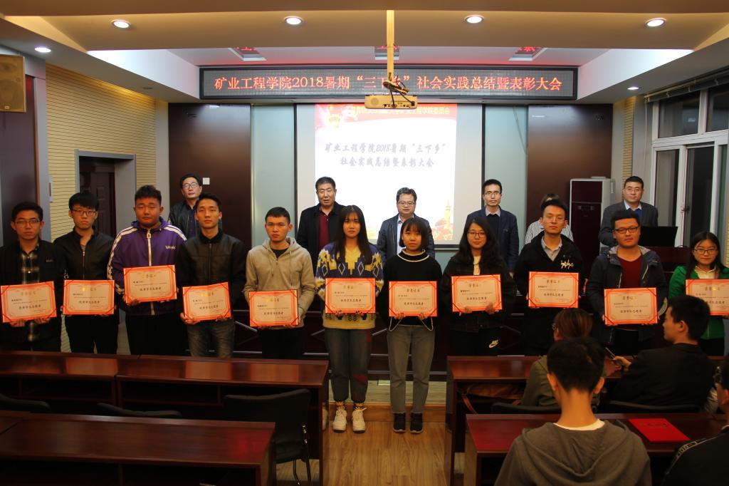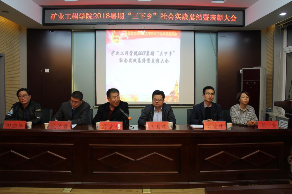 2018年10月19日晚,bwin必赢中国官网暑期“三下乡”社会实践总结暨表彰大会在虎峪校区采矿楼学术厅顺利举行。学院党政领导薛武杰、冯国瑞、武佐君出席;院团学工作负责人刘宏伟、田韶华、刘安、陈保宇以及65名实践队员代表参加了此次会议。武佐君副书记主持会议。