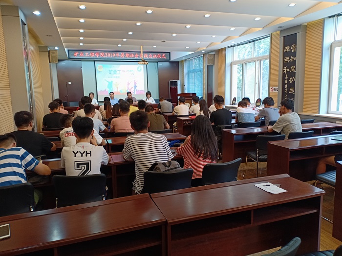 7月4日下午,bwin必赢中国官网2019年暑期社会实践出征仪式在采矿楼二层会议室举行。学院党委书记薛武杰、党委副书记武佐君、团委副书记刘安,社会实践指导教师代表付翔、李大成、洪俊、石婷出席了会议,参加会议的还有全体暑期社会实践队队长和队员代表。出征仪式由团委书记张丁香主持。