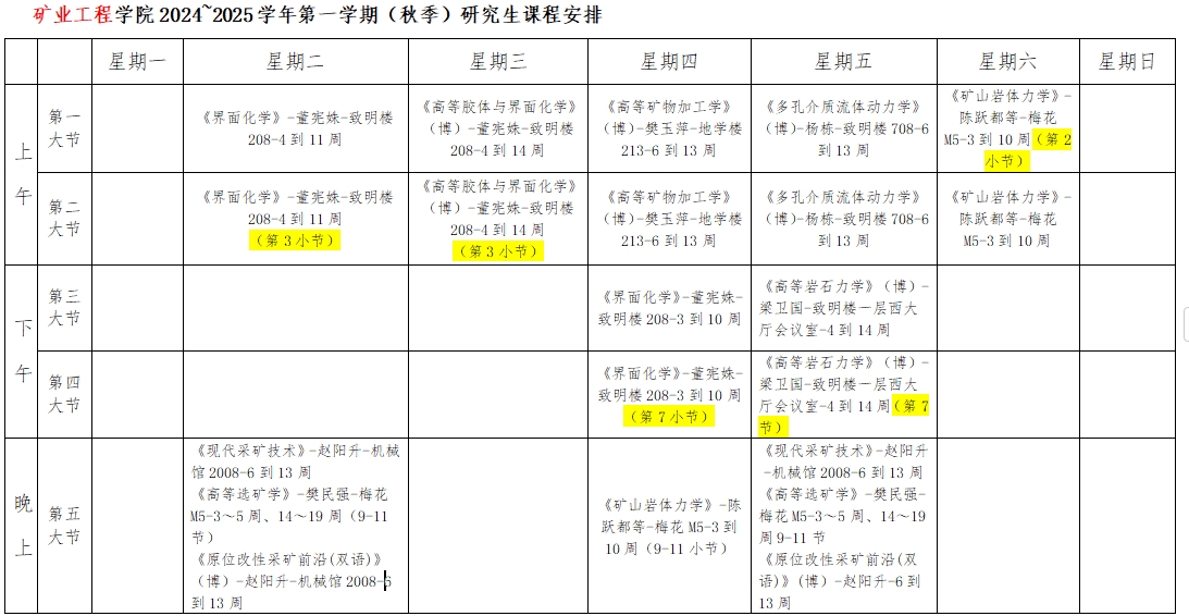 bwin必赢中国官网2024~2025学年第一学期(秋季)研究生课程安排
